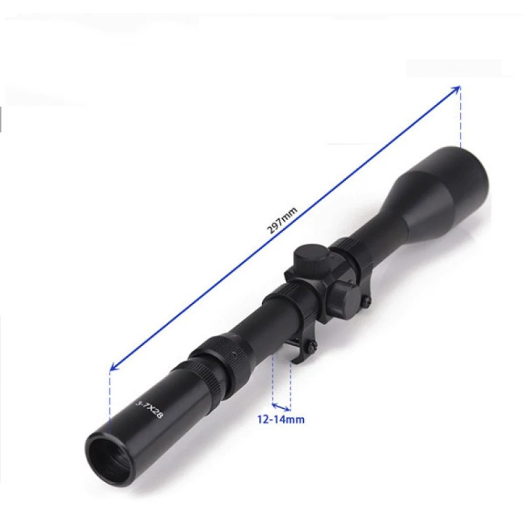 بدون شک یکی از دوربین های عالی برای استفاده بر روی تفنگ بادی، دوربین تفنگمدل 28x7-3 C است .این دوربین دارایی قدرت زوم 3 تا 7 برابر بصورت متغیر است. قطر عدسی این دوربین 28 میلی متر است و طول این دوربین 30 ساتی متر است .وزن خالص این دوربین 100 گرم می باشد .این دوربین قابلیت این را دارد که روی هر اسلحه ای نصب شود و این دوربین دارای دو درپوش برای جلوگیری از کثیف شدن و گرد و غبار گرفتن است.