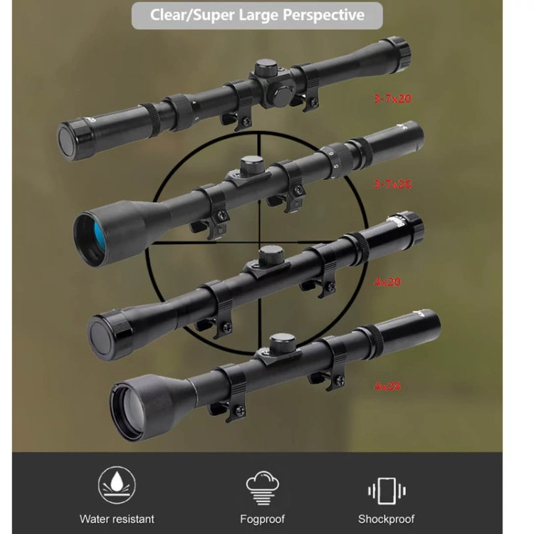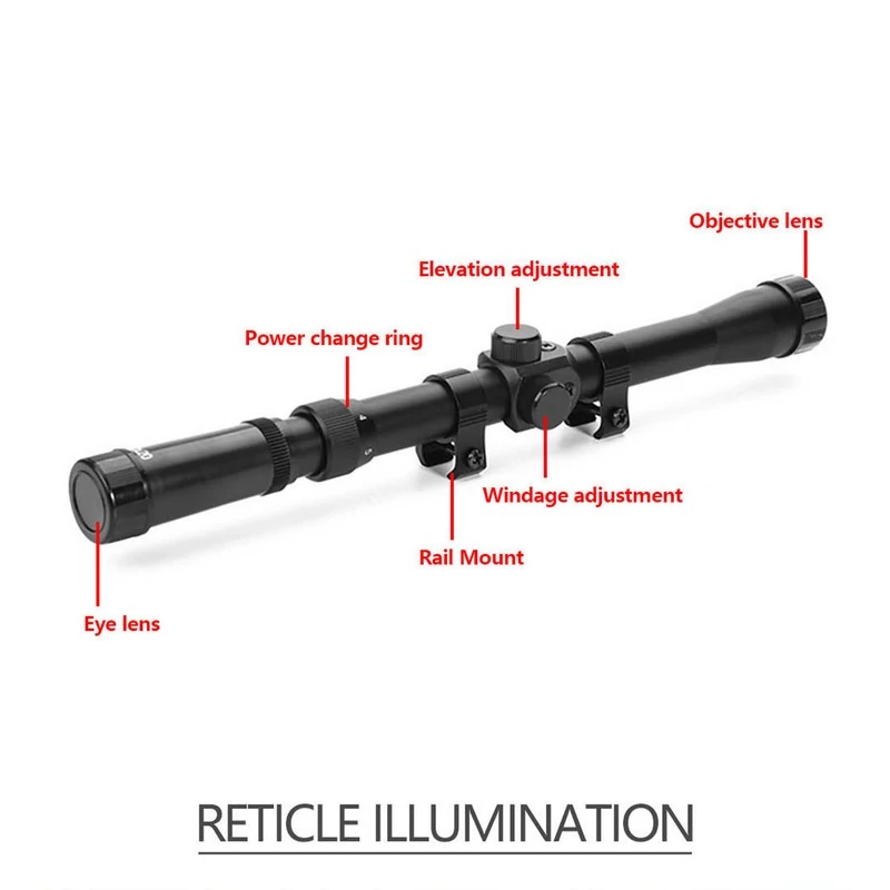 مشخصات-سایر توضیحات: مناسب برای تفنگ بادی ضد آب، ضد بخار و ضد ضریه دارای روکش چندگانه DDB دارای زاویه میدان دید عریض دارای عدسی با فوکس سریع