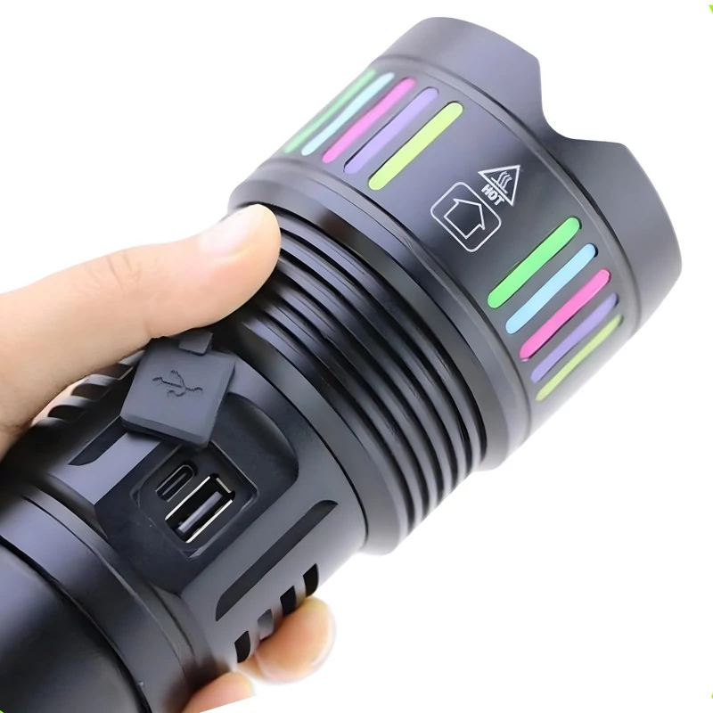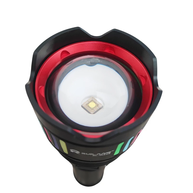 چراغ قوه زوم دار RL-W512 دارای 5 حالت نوردهی و 4 عدد باتری لیتیومی دوبل قابل شارژ با قابلیت خروجی usb پاور بانک برای استفاده در مسافرت، نگهبانی، کوهنوردی، کمپینگ و دیگر فعالیتها در فضای باز