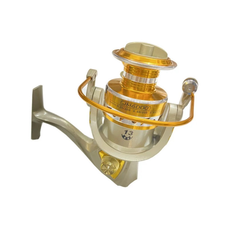 چرخ ماهیگیری JM6000 یک چرخ با کیفیت،پرقدرت و بسیار روان است.این چرخ گیربکسی بوده و دارای سیستم ضد برگشت روتور یا AVS می باشد همچنین ظرفیت نخ این چرخ ماهیگیری شامل نخ سایز 0.35 میلیمتر 260 متر، نخ سایز 0.40 میلیمتر 200 متر و نخ سایز 0.45 میلیمتر 170 متر است.جنس بدنه و اسپول آن از آلیاژ فلز تیتان و گرافیت بوده و قابلیت تنظیم برای دست چپ و راست را دارد