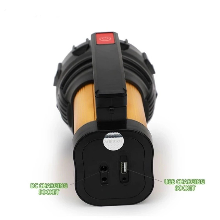 برند ویداسی « Weidasi » نورافکن دستی برای نگهبانی، کمپینگ، کوهنوردی، مسافرت، طبیعتگردی و... با نام نورافکن دستی ویداسی WD-576 را با رنگ های بژ و کرمی و بدنه ای محکم از جنس پلاستیک و فلز وارد بازار کرده است. این نورافکن از نوع شکاری می باشد و کاربر به راحتی می تواند به وسیله دسته ای که در بالای چراغ قوه تعبیه شده آن را حمل و جابه جا کند.باتری این محصول از ظرفیت 7000 میلی آمپر بهره می برد که به راحتی شارژ می شود. توان این نورافکن دستی 20 وات می باشد که نور قابل توجهی را تولید می کند.رنگ نور ویداسی WD-576 مهتابی می باشد که اصلا باعث اذیت چشم های شما نمی شود. بدنه محکم این محصول امکان استفاده سال های طولانی را به شما می دهد. با هر بار شارژ کردن این نورافکن می توانید شاهد کارکرد طولانی این محصول با کیفیت باشید.این چراغ قوه دارای باتری داخلی قابل شارژ می باشد که هم با آداپتور شارژ می شود هم با کابل USB شارژ می شود، مدت زمان شارژ شدن نورافکن wd 576 برای شارژ کامل بسیار کم می باشد پوشش این مدل از جنس پلاستیک و فلز با کیفیت می باشد برای مقاوم تر شدن در برابر ضربه های احتمالی و بالاتر رفتن عمر دستگاه از این جنس تولید شده است.